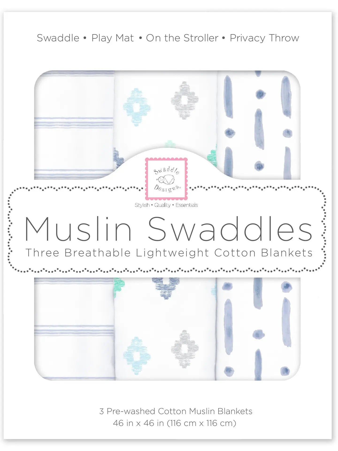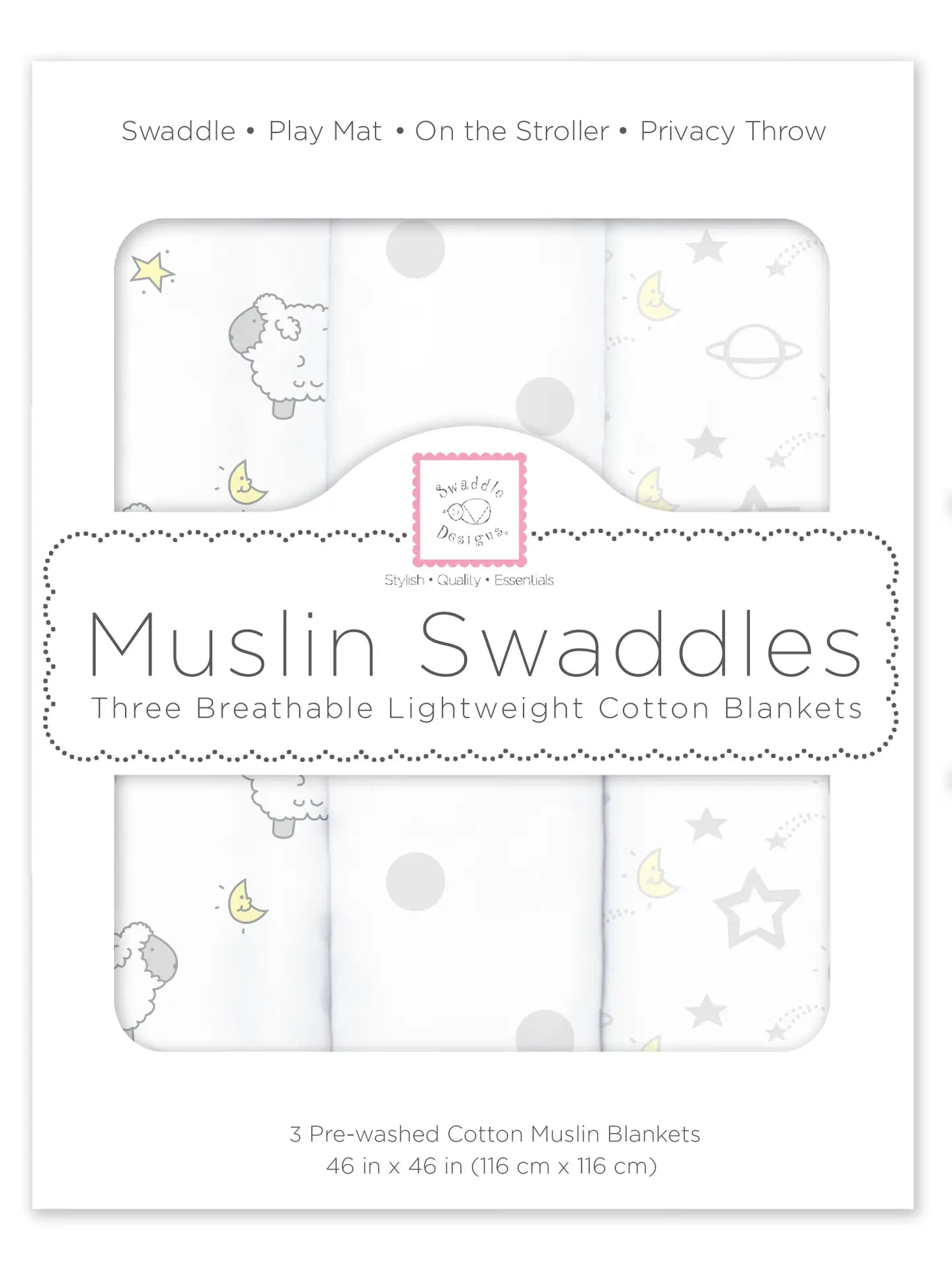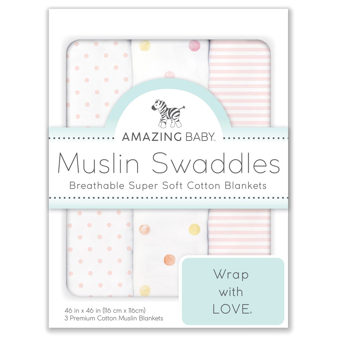 Our lovely assortment of muslin swaddles will keep your baby comfortable during the warmer months, and muslin baby blankets are handy all year long for many uses beyond swaddling. They can be used as a playmat for tummy time, a privacy throw for feeding baby, a sun shield or a burp cloth over mom or dad's shoulder.