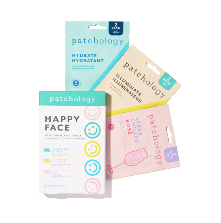 The ultimate 6-pack facial sheet mask bundle Happy Face with Illuminate, Hydrate, and Rosé. Each mask is specially designed to provide your skin with the care it needs to look and feel its best.