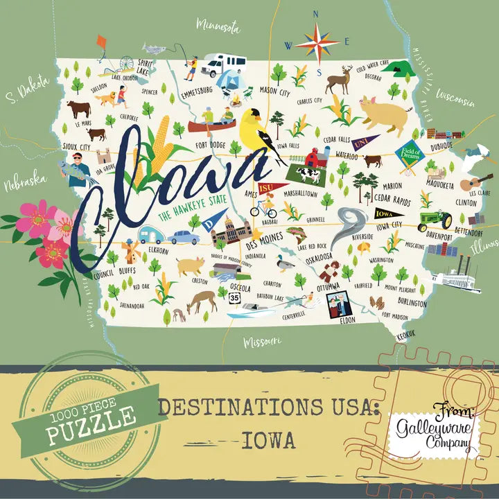 Piece together your love for the Hawkeye State with our Destination Iowa Puzzle! With 1000 pieces, this puzzle is sure to challenge and entertain the whole family. Show off your state pride while having a fun time with this unique puzzle.