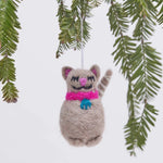 This festive feline is sure to add some cuteness to your holiday tree! I mean come on... do you see that little smile!? Our tan cat felt ornament is perfect for any cat lover, or simply anyone who can't resist cute decor! All of our original felt ornaments are handmade from sheep wool and AZO-free dyes by a fair trade company in Nepal whose mission is to provide a healthy workplace and fair wages to their predominantly female staff. These unique ornaments aren't only for decorating your tree, these also make great baubles to attach to gifts. Simply attach them to a bow or gift bag and instantly elevate your gift-wrapping game!