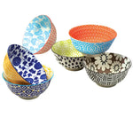 What sets these bowls apart is their vibrant and varied patterns. The intricate designs are reminiscent of traditional craftsmanship, with each bowl boasting a unique color and pattern combination. From the bold blue and white floral motifs to the warm yellow geometric patterns, the set offers a visual feast that promises to elevate the dining experience.