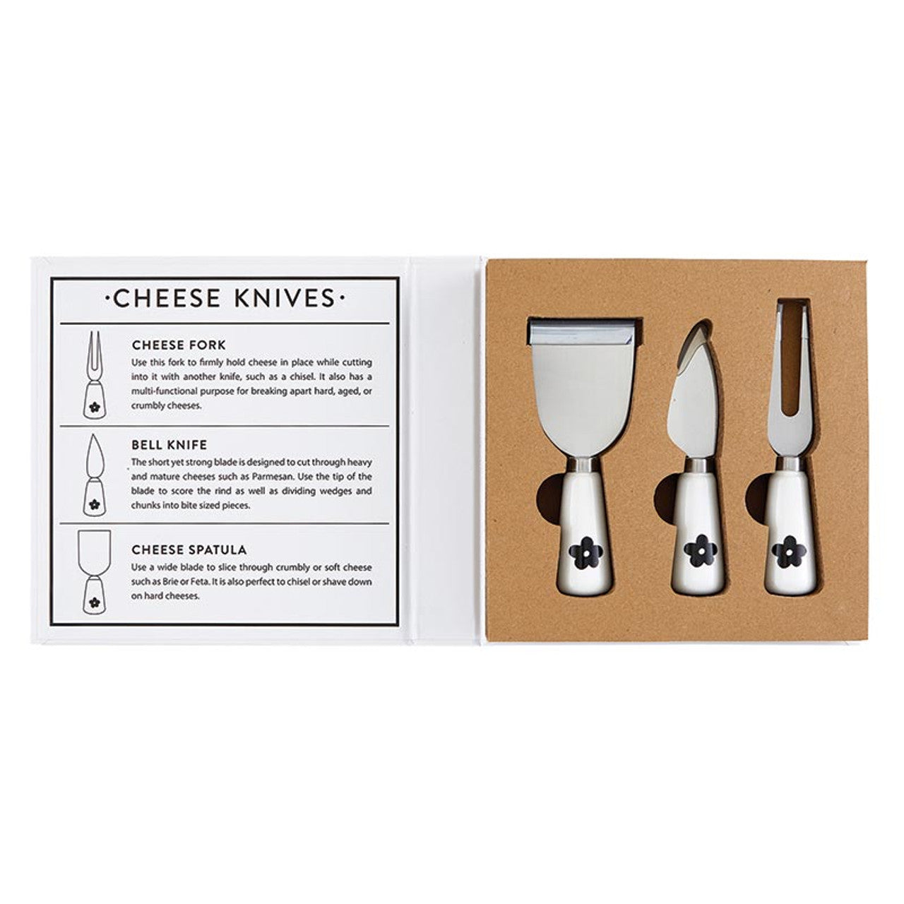 Set of three cheese knives with a cute, retro flower design. Cut and serve gourmet cheese with ease. Very giftable - it comes in book box packaging with lovely presentation.