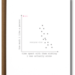 Are you an introvert who doesn't typically like people? Show that special person in your life that they're an outlier compared to the rest. Y-axis says: "how much I like a person" and x-axis says: "time with them wishing I were actually alone."