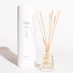 Perfume any room with an ultra-chic reed diffuser for a delightful botanical aroma without the flame. Perfect for your home office, powder room, or any space that needs that extra something something. The custom made glass screenprinted Reed Diffuser bottles are packed in a two-piece textured paper tube.