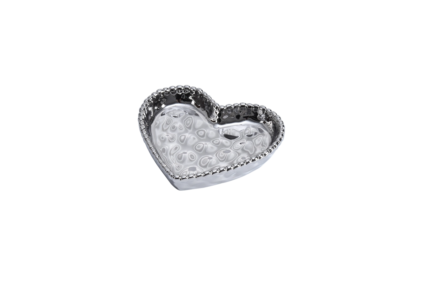 Silver Mini Heart Dish in Love is in the Air. Perfect all year round! This heart dish’s petite size will look gorgeous on a vanity or just about anywhere. A great Valentine’s Day, Mother’s Day or birthday gift! Show someone you “heart” them with this delightful dish. Crafted in stunning silver titanium finish with lustrous beads.