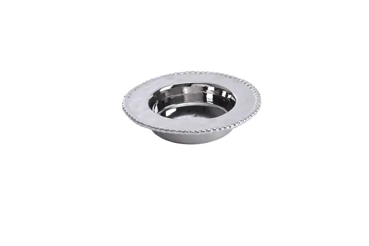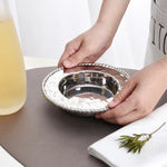 Wine bottle coaster with cork round. Great to give as a gift all on its own or with a bottle of wine! Every home needs at least one of these gorgeous and practical coasters. Perfect for wine bottles and water bottles, this coaster will prevent drips or condensation from running onto your table! Striking and elegant silver titanium finished high-fired porcelain. Removable 3mm thick cork insert.