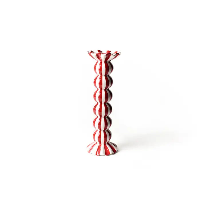 Add a touch of sophistication to your home with our Red Stripe Large Ruffle Knobbed Candle Holder. The hand-sculpted ceramic design uses a knobbed body shape, ruffle head and foot, and a vertical red and white striped pattern to create a unique candle holder.