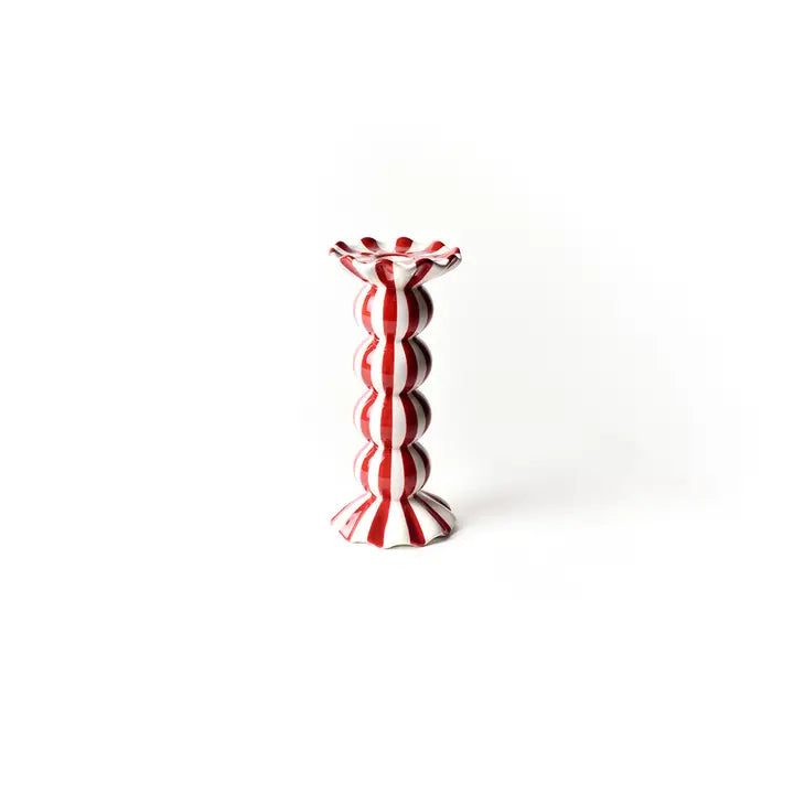 Add a touch of sophistication to your home with our Red Stripe Large Ruffle Knobbed Candle Holder. The hand-sculpted ceramic design uses a knobbed body shape, ruffle head and foot, and a vertical red and white striped pattern to create a unique candle holder.