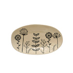 Elevate your entertaining with this stunning 12.25" x 7" Hand-Painted Stoneware Platter. Featuring a timeless cream background with embossed floral details and elegant black accents, this platter strikes the perfect balance between rustic charm and refined elegance.