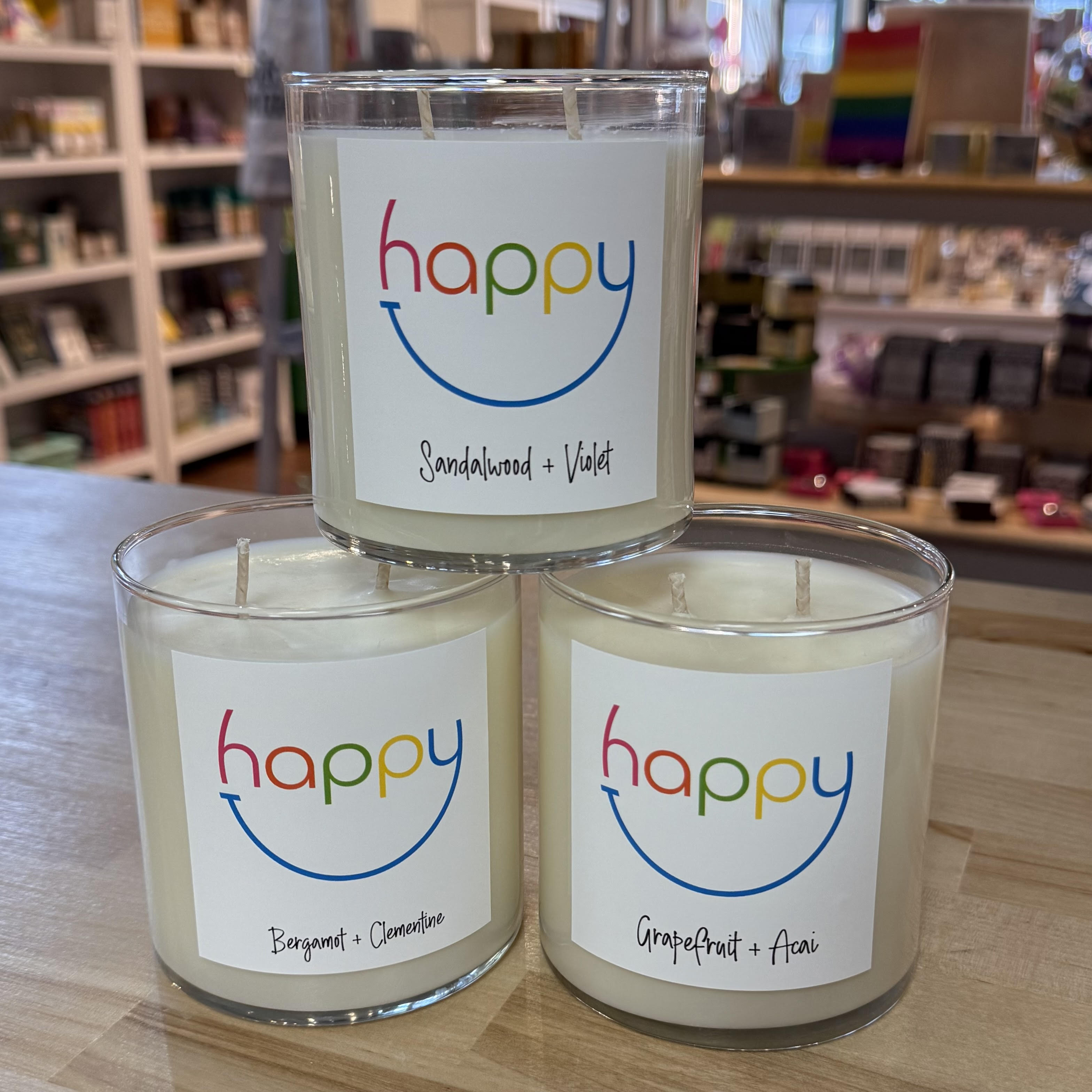 Every candle is dressed in our signature colorful Happy logo—a simple reminder to celebrate the little things. Light one for yourself or gift it to someone who could use a little more happy in their day!
