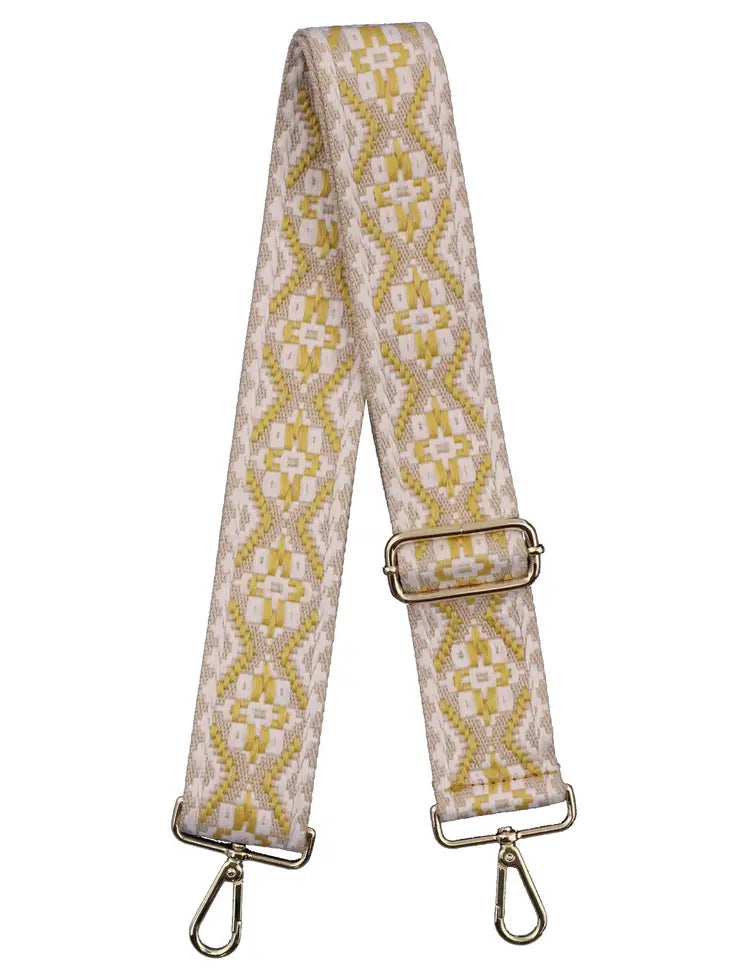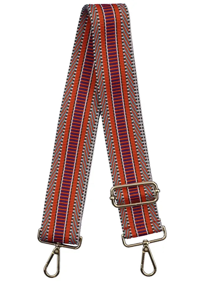 Add a striking fabric bag strap to one of our leather camera bags to mix up your look! The possibilities are endless! The clip fastenings on the straps will also clip onto other bags and give them a new lease of life! Gold colored hardware.