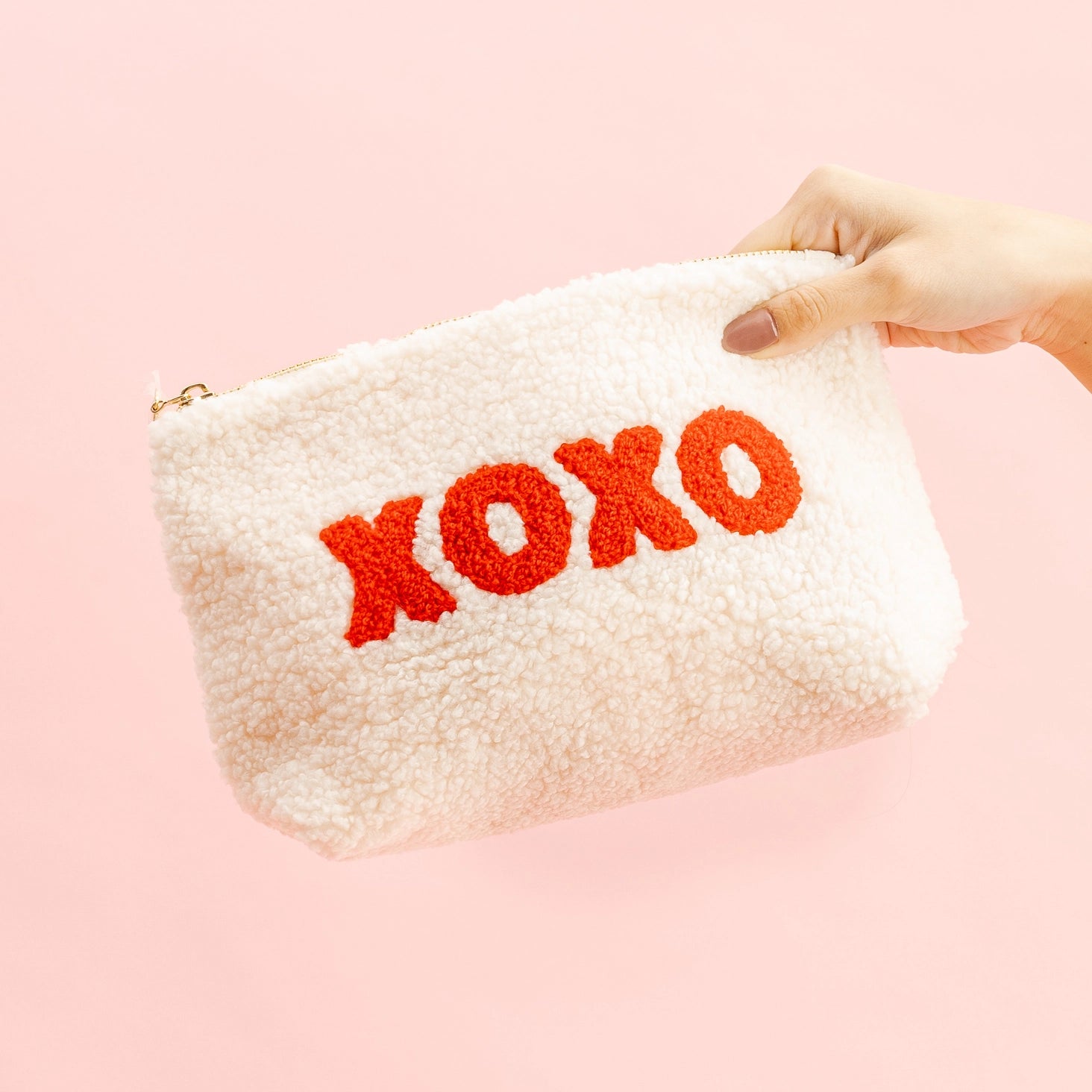 Keep your items safe, secure and stylish in this adorable sherpa pouch. Whether it's for your daily essentials or your carry-on accessory, this pouch can carry whatever you need.