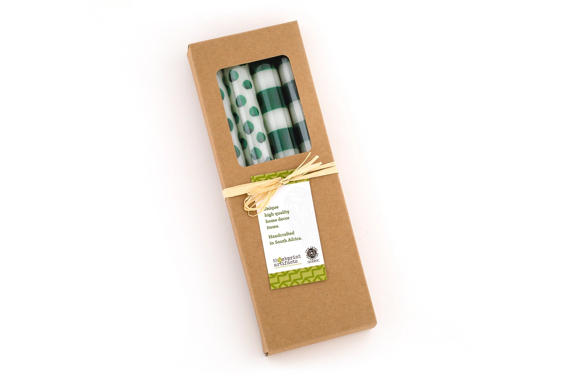 - Tapers are packaged in a gift box containing a matched pair of stripes and a matched pair of dots