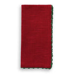 This Knotted Edge Napkin is made from 100% cotton woven chambray. Adorned with an festive green trim.