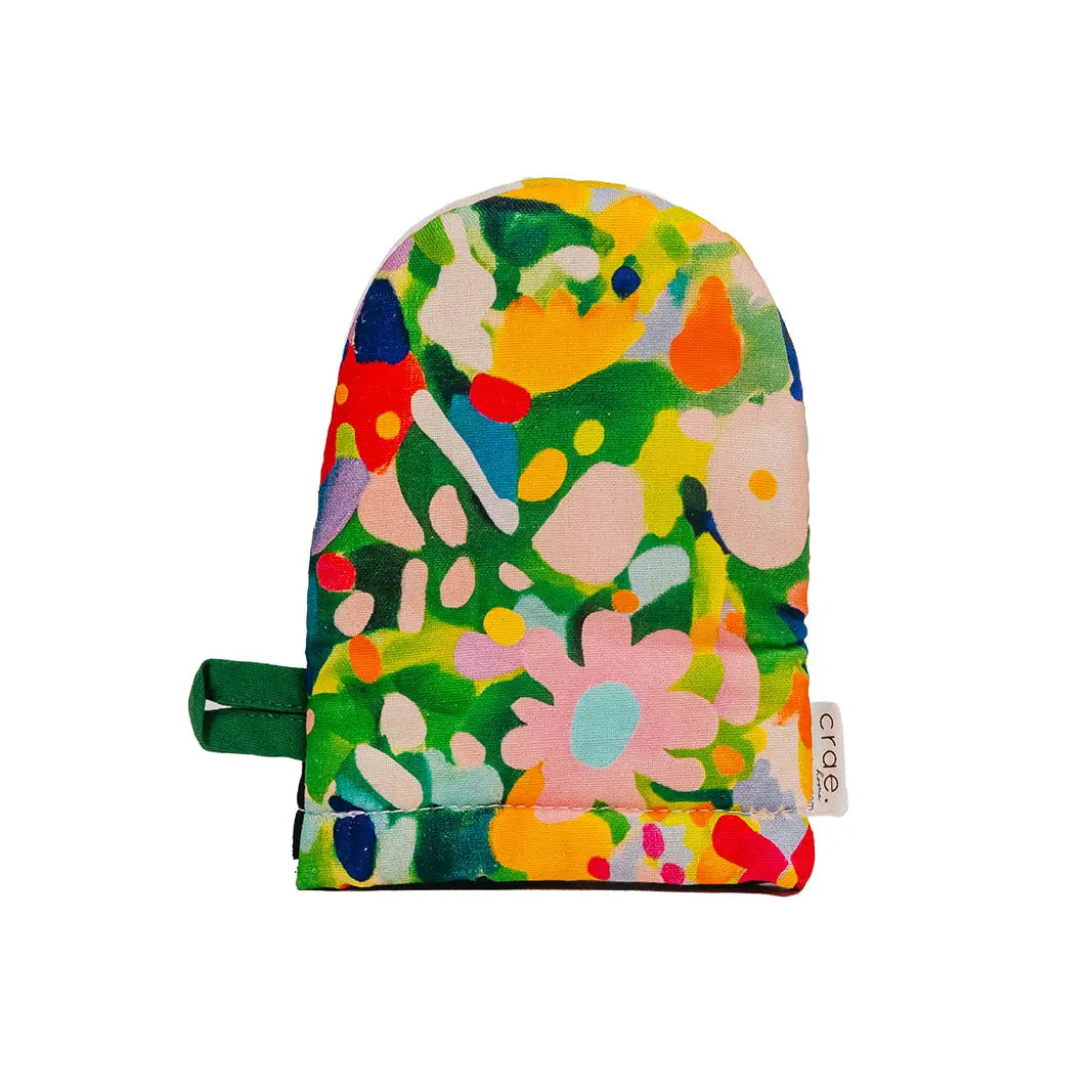 Small but mighty! This adorable mini mitt packs all the charm and function of our full-size version in a shorter, handier size. Made from soft cotton with a cheerful mix of prints, it features a silicone-lined grip inside for a secure hold on hot pans and baking trays. Measuring 7.5”x 5.5”, it fits comfortably on either hand and includes a hanging loop for easy storage (or display!). Cute, cozy, and perfectly sized for quick grab everyday cooking moments! Turn up the heat and get crae.