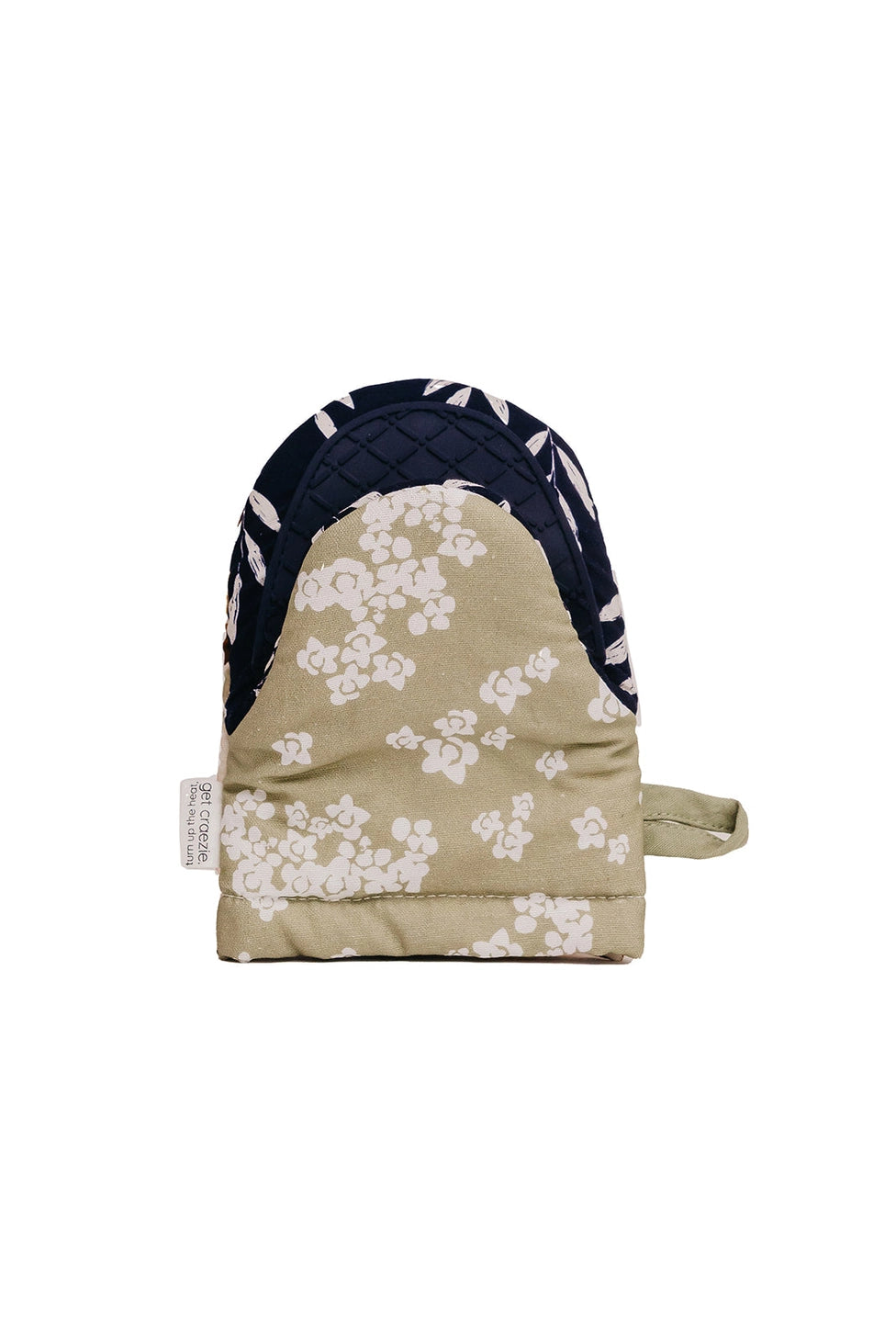 Small but mighty! This adorable mini mitt packs all the charm and function of our full-size version in a shorter, handier size. Made from soft cotton with a cheerful mix of prints, it features a silicone-lined grip inside for a secure hold on hot pans and baking trays. Measuring 7.5”x 5.5”, it fits comfortably on either hand and includes a hanging loop for easy storage (or display!). Cute, cozy, and perfectly sized for quick grab everyday cooking moments! Turn up the heat and get crae.