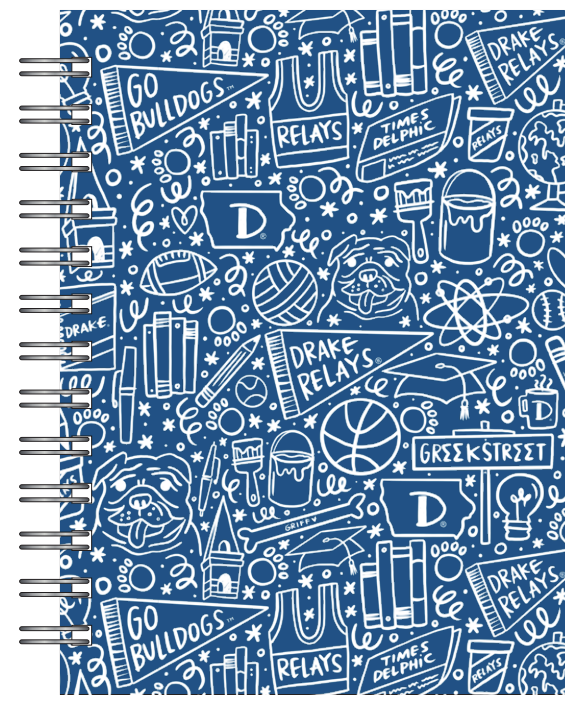 This 5" x 7" spiral notebook features whimsical, custom artwork celebrating all things Drake—from beloved campus landmarks to iconic Bulldog details. Compact and full of personality, it’s perfect for class notes, to-do lists, or game day doodles. A special addition to our Drake Care Packages and available only at Happy DSM!