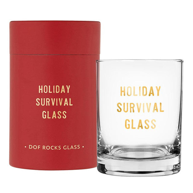 Holiday Survival Rocks Glass