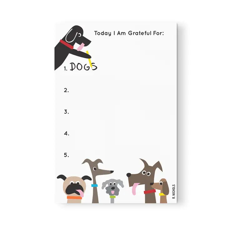 Natural colored 100 sheet 3 3/4" x 5 1/2" Dog Pack Gratipad packaged in a cello sleeve. 100 days of thanks. Practice the art of finding gratitude in everyday life.