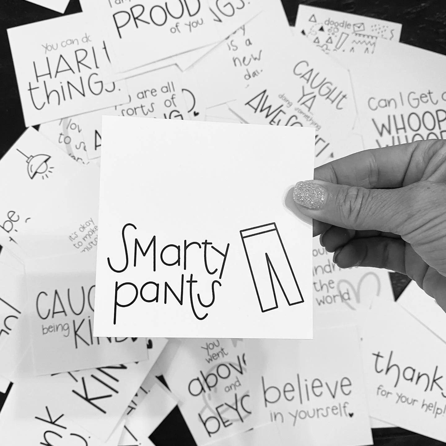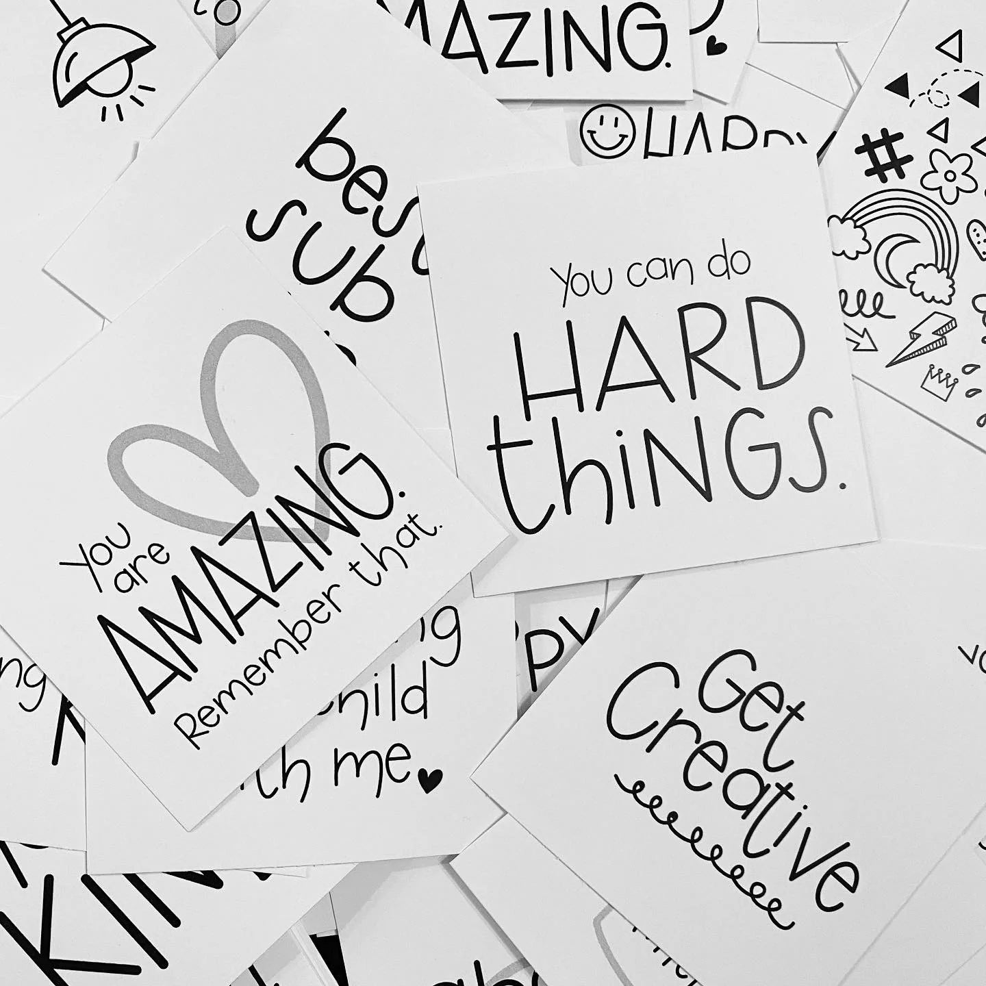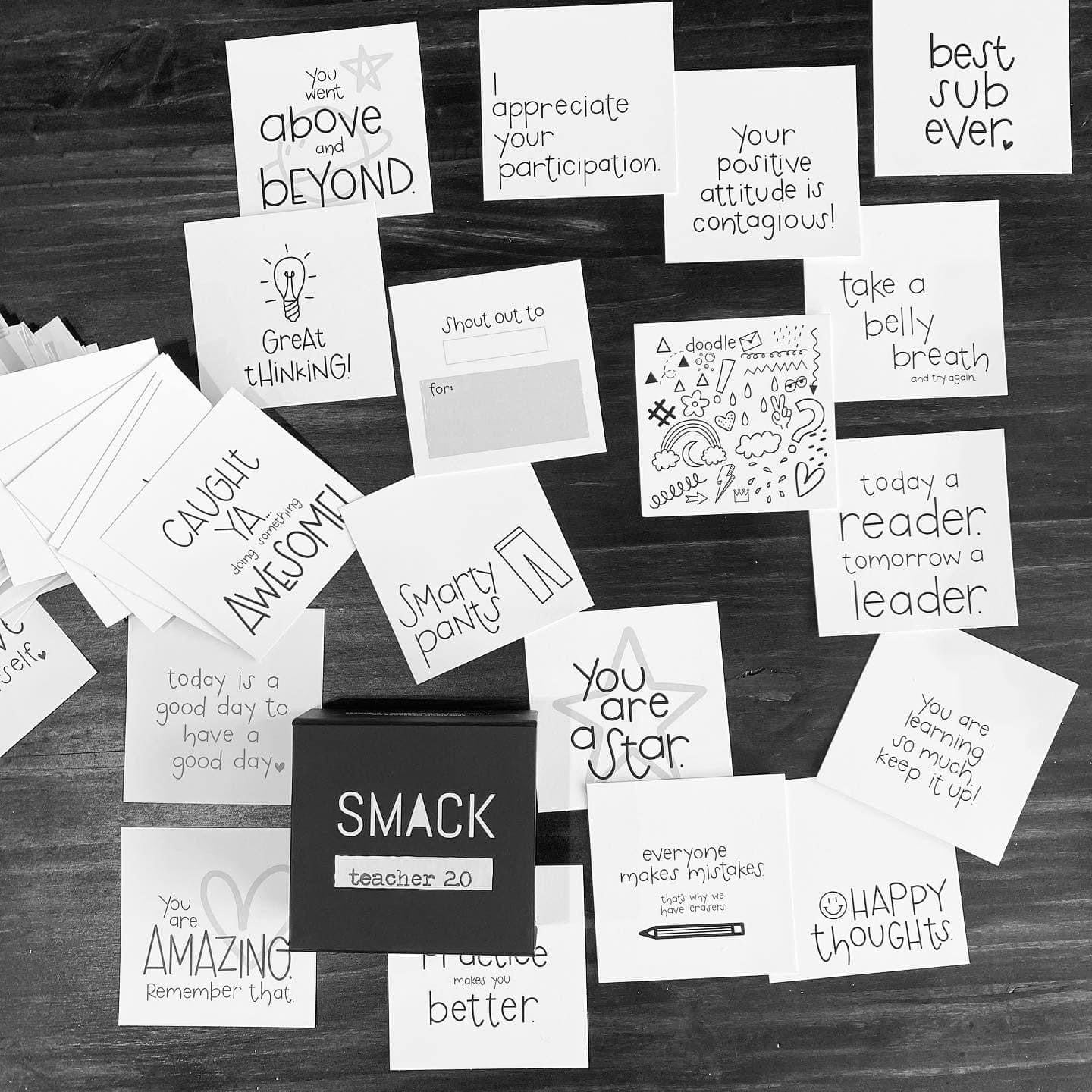 Each 4" x 4" card is hand-lettered by the founder of SMACK, then professionally printed on heavyweight white matte note. This pack comes in a matte black, magnetic closure box that is sturdy enough to take everywhere with you.