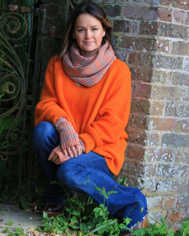 Cozy up in this wonderfully warm infinity scarf, available in three vibrant and distinctive color combinations. Reversible and double length, this snood is super versatile and can be worn wrapped around the neck once or twice.