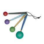 Enameled Stainless Steel Measuring Spoons w/ Colored Edge & Leather Tie, Multi Color, Set of 4