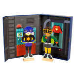 Help these friends get ready to save the day! Choose their costumes and accessories with this hero-packed magnetic dress-up set, including two magnetic figures, two wooden stands, 27 magnetic pieces and a secret hide-out. Shhhhh!